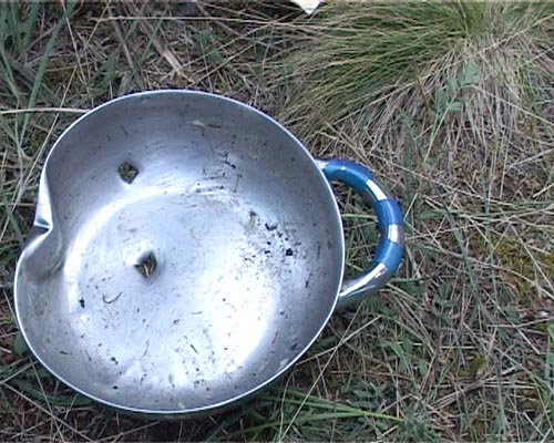 Рязанцы подсчитали свой ущерб. Пострадал один человек- травма ноги, прострелен К-4 – более 10 сквозных отверстий, порвана палатка, прострелено весло и посуда. У другой группы ущерба нет.
