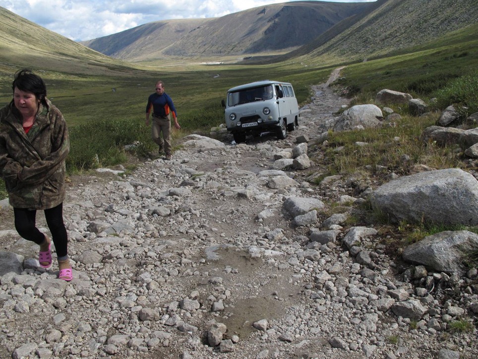 Выброска возможна из п. Джазатор, куда подходит дорога из Кош-Агача. Дорога грунтовая, но довольно хорошая (по местным меркам). Транспорт повышенной проходимости на ней не требуется, но тем не менее, не каждый водитель захочет туда ехать. Мы заказывали машину в «Би- АлТур» заранее. Но можно искать на месте транспорт до Кош-Агача (у Альберта Каменова или у местных жителей), а оттуда уже идет асфальтовая дорога и можно ехать на чем угодно.