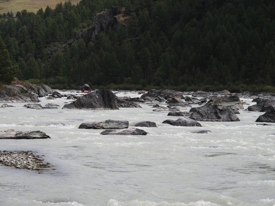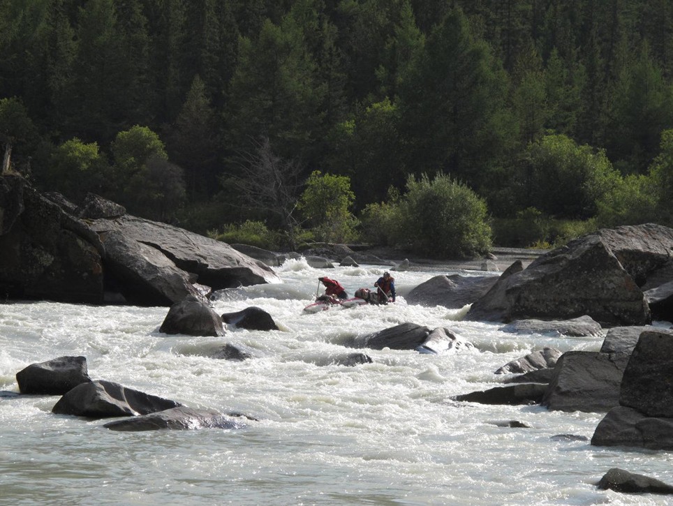 В этом году группа получилась маленькая, т.к. у всех знакомых водников возникли различные обстоятельства, в связи с которыми они не смогли участвовать в летнем походе (рождение ребен- ка, отсутствие отпуска или денег). А искать совсем незнакомых людей по объявлению не хоте- лось. В итоге пошли вчетвером. Особых неудобств это не доставило. Основными недостатками малой группы стало значительное удорожание заброски на одного человека и утяжеление рюк- заков на сплаве, т.к. все общественное снаряжение делилось на четверых, а не на 8-10 человек. Мы не ставили целью похода какие-то спортивные достижения или открытие чего-то неизвест- ного. Хотелось просто отдохнуть в красивых, малонаселенных местах. Для этой цели маршрут подходит в полной мере. Кроме нас на реке не было ни одной группы, а прочих туристов мы ви- дели только на плато Укок и на базе «Кабарга».