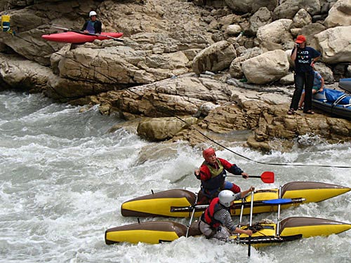 Логичнее проходить связку рек именно в такой последовательности. Сначала Аварское Койсу потом Андийское Койсу. В этом случае нарастание сложности препятствий происходит постепенно. Имеется возможность втянуться и сработаться . На обоих Койсу есть ряд шестерочных порогов. На Аварском Койсу их больше, но преимущестенно фоном им служат пороги 4 к.сл. На Андийском Койсу шестерочных порогов меньше, но они на хорошем пятерочном фоне остальных порогов.