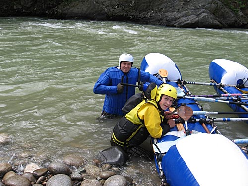 2.05 Утром выглянуло солнце. Сегодня предстояло дойти до пос Каменномосткий. При подготовке к сплаву встретили забрасывающихся наверх группу А Махляева (Мир приключений). Сплав начали около 11.40 За 10 минут дошли до входа в каньон Аманхит. Длина каньона около 1.5 км. Провели подкачку судов.
