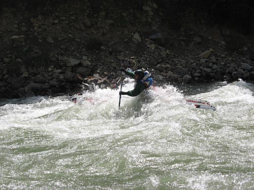 7.05 «Попов Воскрес!»- утро оказалось ветреным. Собрали лагерь и начали последний авторывок к точке сплава. Доехав до Затычки, уровень оценили как средний. Наблюдали прохождение порога московской группой по правому берегу. Спустив суда ниже «Затычки» начали сплав. Река идет в каньоне, большие валы, бочки.