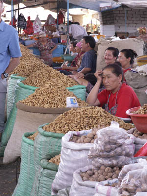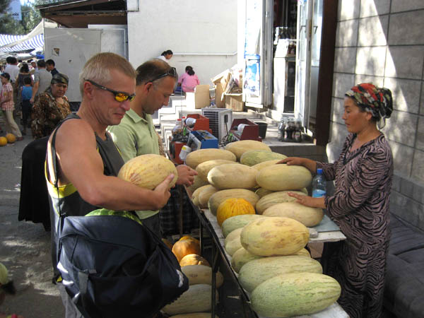 Ош — второй по величине город Киргизии, и именно базар, а не какая-нибудь там площадь Ленина, — его сердце. А также мозг, лёгкие, желудок и дальше по списку. Здесь мы потратили не один час, закупая недостающий провиант, а попутно приобщаясь к восточному образу жизни. Всё остальное время было проведено за достарханами в окрестных чайханах: дегустация достижений туземной кулинарии — дело, не терпящее суеты и спешки. Гурманам можно порекомендовать лагман — самодельную лапшу с мясом и овощами, манты — гигантские пельмени, приготовленные на пару, и самсу — местную разновидность пирожков с мясом. А плов всё-таки лучше удаётся узбекам.
