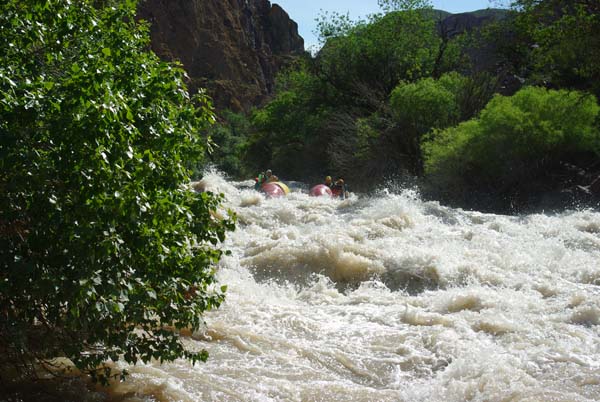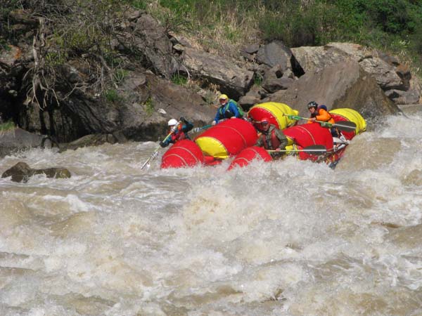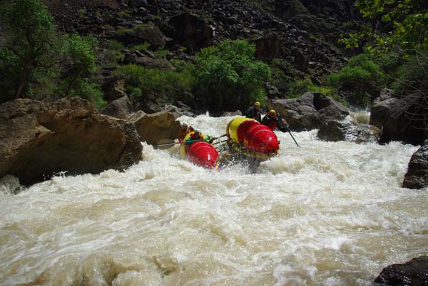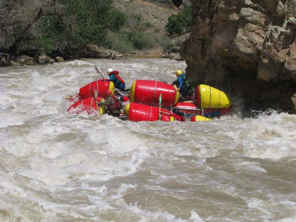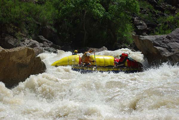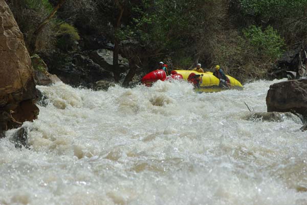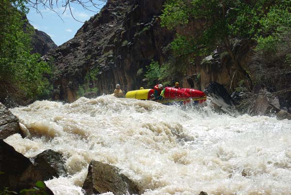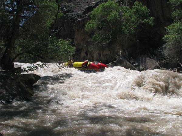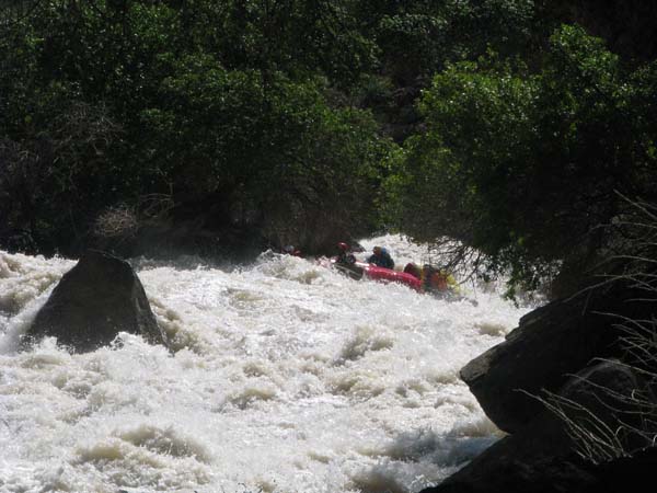 Река не дала расслабиться до самого конца. Даже на нижних каньонах, где обычно проводят коммерческий сплав в условиях нашей воды препятствия имели 5-6 категорию сложности (к примеру, порог «Сто тысяч баксов»), а в прижимах кат норовило размазать по стенам.