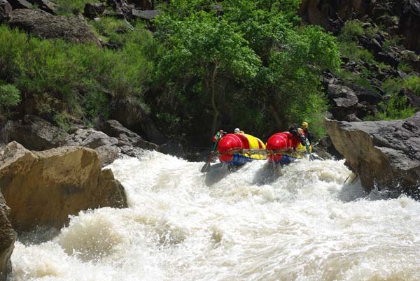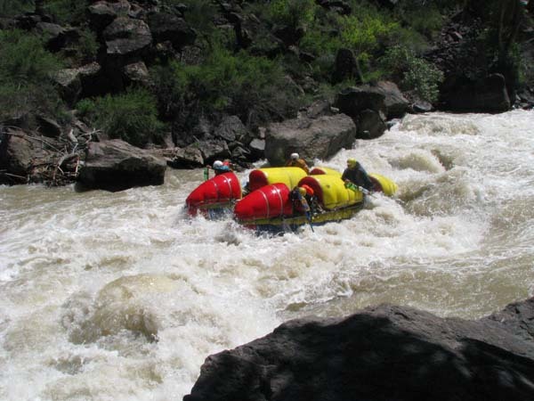 Река не дала расслабиться до самого конца. Даже на нижних каньонах, где обычно проводят коммерческий сплав в условиях нашей воды препятствия имели 5-6 категорию сложности (к примеру, порог «Сто тысяч баксов»), а в прижимах кат норовило размазать по стенам.
