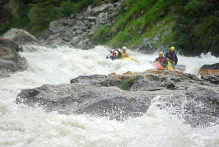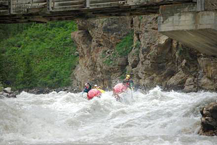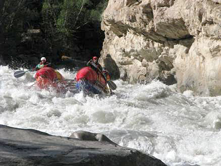 Описать данное препятствие почти невозможно. Первоначально кажется, что кульминация каньона прямо перед глазами (сразу после автомобильного моста). В малую воду (возможно и в среднюю) так оно и есть. Двадцать лет назад, когда мы принимали решение о возможности прохождения каньона хотя бы одним катамараном,