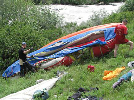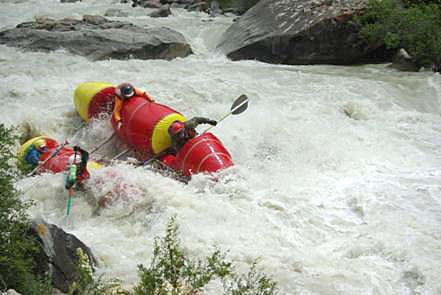 В связи со всем вышеперечисленным возникла теоретическая дискуссия: «Прохождение реки в паводок это всего лишь прохождение реки с большим расходом воды». Я не согласился с этим постулатом. Дело не в увеличенном расходе воды, дело в том, что паводок длится очень короткое время и река не успевает проработать русло по этому уровню воды. Отсюда неминуемые проблемы с отсутствием нормальных чалок и организацией страховки. К тому же в основном потоке оказываются камни с острыми краями, так как вода их не успевает обточить за время кратковременного паводка. Это дополнительные трудности и неминуемый ремонт судов. Как видите масса дополнительных проблем не связанных с чисто техническим усложнением маршрута. И если вы хотите почувствовать мощь реки с расходом в 150-200 кубов, то лучше найти реку, где эти кубики являются средне сезонным расходом, а не подгадывать паводковые дни. Если Вы со мной не согласны я готов это обсудить на «taganok.ru».