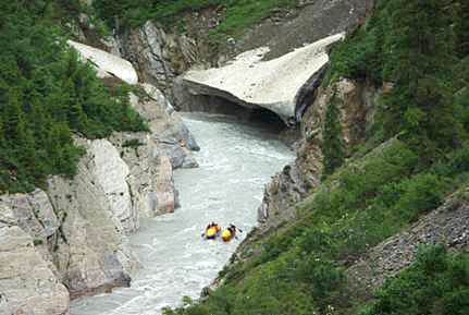 От Джилусу до Верхнего каньона на М.Нарыне мы скатились за один день. Столь стремительное начало было обусловлено тем, что нам надоело постоянно сидеть в облаке, пока проходил стапель. Начало сплава было на отметке около 3 000 м.