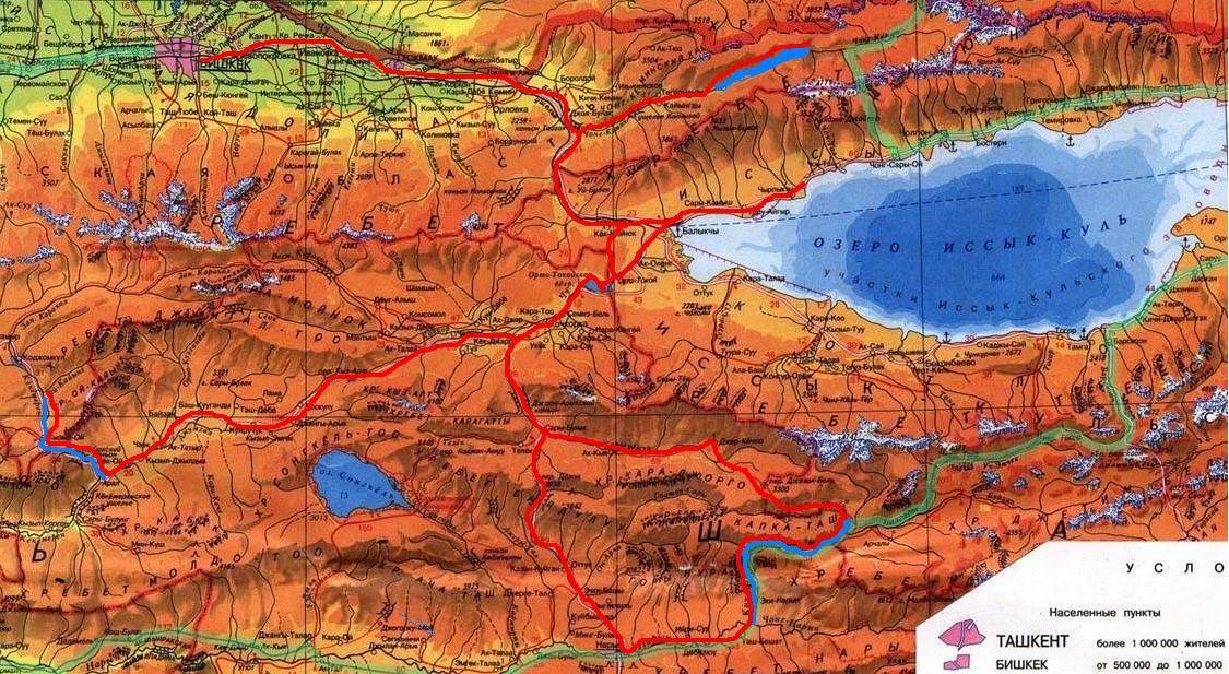 Обзорная карта маршрута (Тянь-Шань, Киргизия).