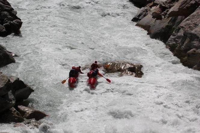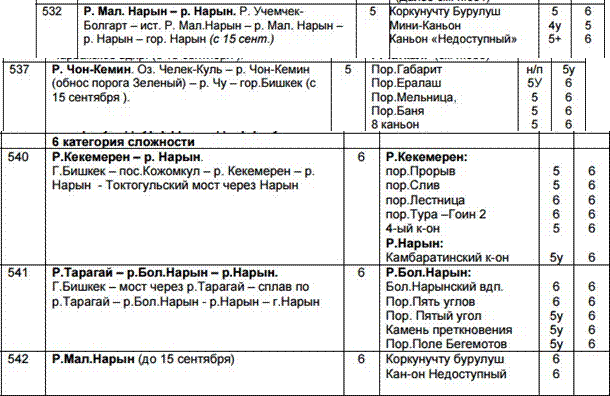 5. В районе Тянь-Шаня совершен водный поход по трем рекам Чонг-Кемин, Малый Нарын и Кекемерен, который можно отнести в пройденном варианте к 6 категории сложности и рекомендовать к прохождению подготовленным группам при достаточном опыте и соответствующем снаряжении. Набор и сложность определяющих препятствий соответствуют заявленной и пройденной категории сложности маршрута.