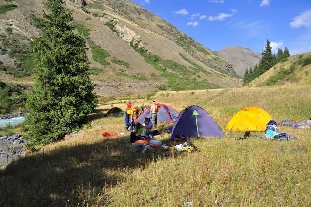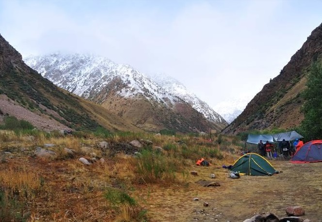 3-я ночевка ниже «Полицкого». 42.792112 N, 76.388213 E. высота 2017 м. Пройдено 5 км.