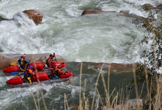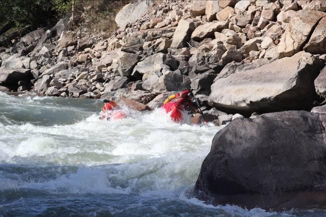 1. Опасность представляют определяющие препятствия – участки с высокой скоростью течения, обилием камней, сложной траекторией движения в порогах. Участникам следует особо тщательно отнестись к выбору сплавного снаряжения — шлем, спасательный жилет, защитный костюм.