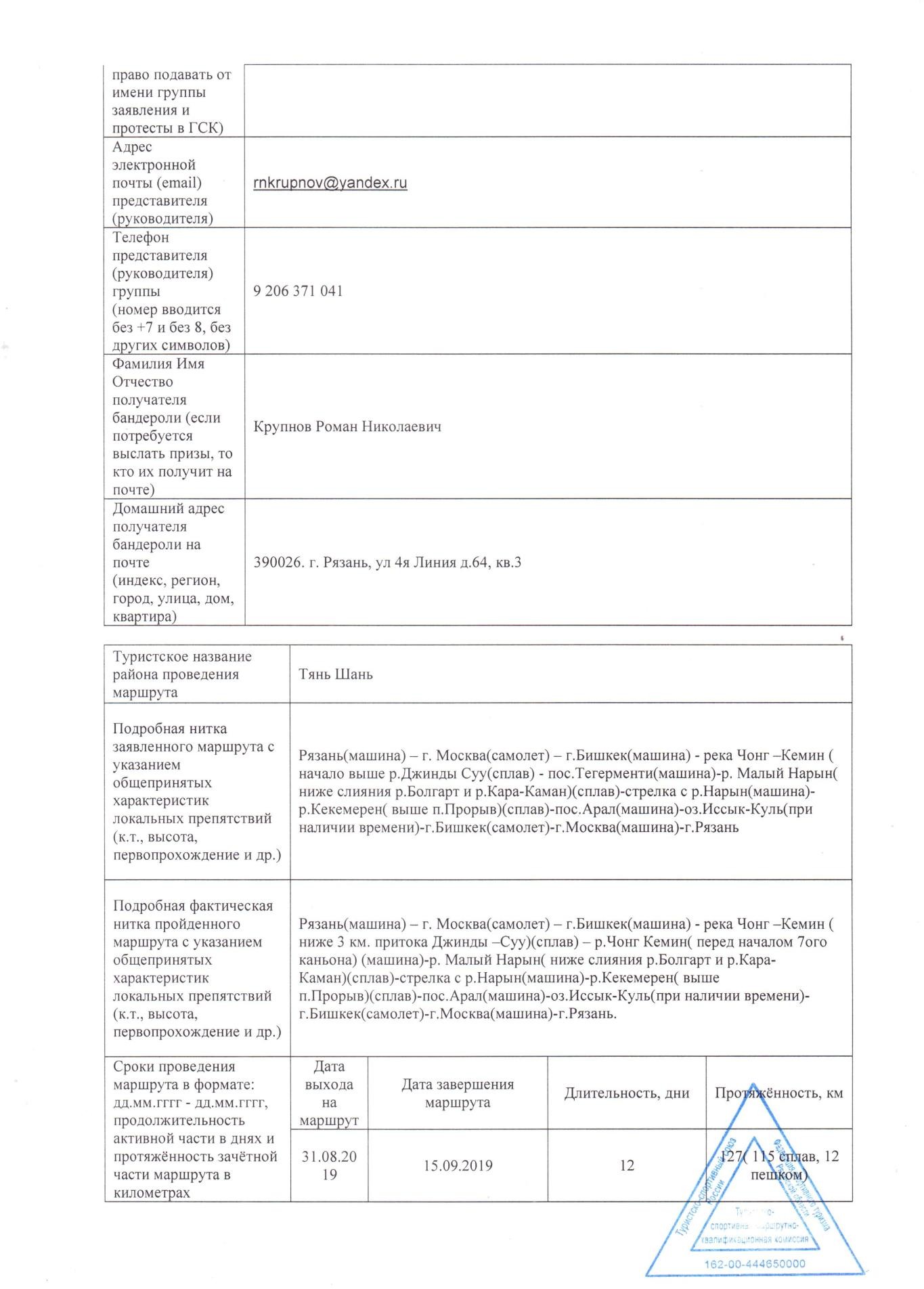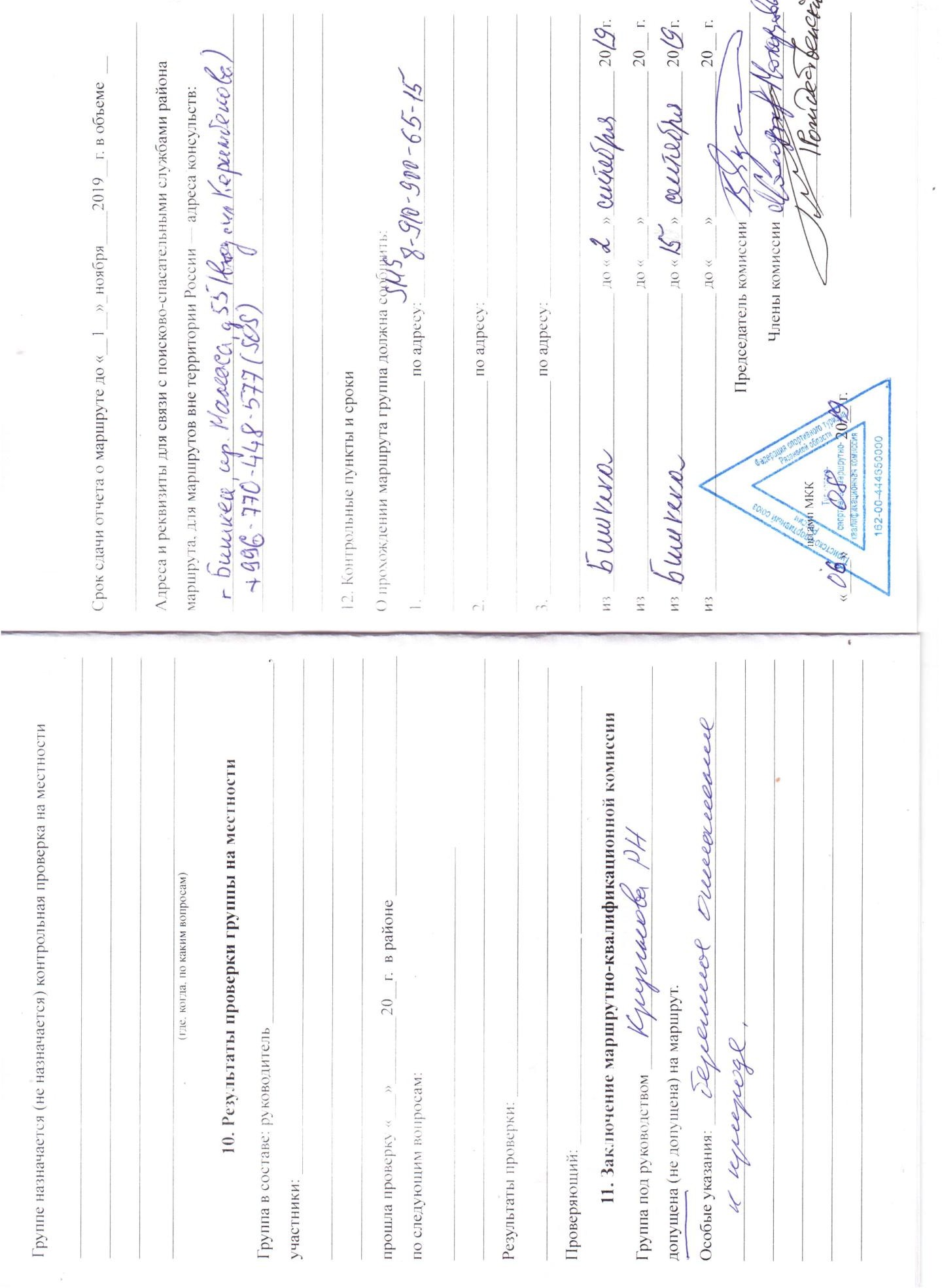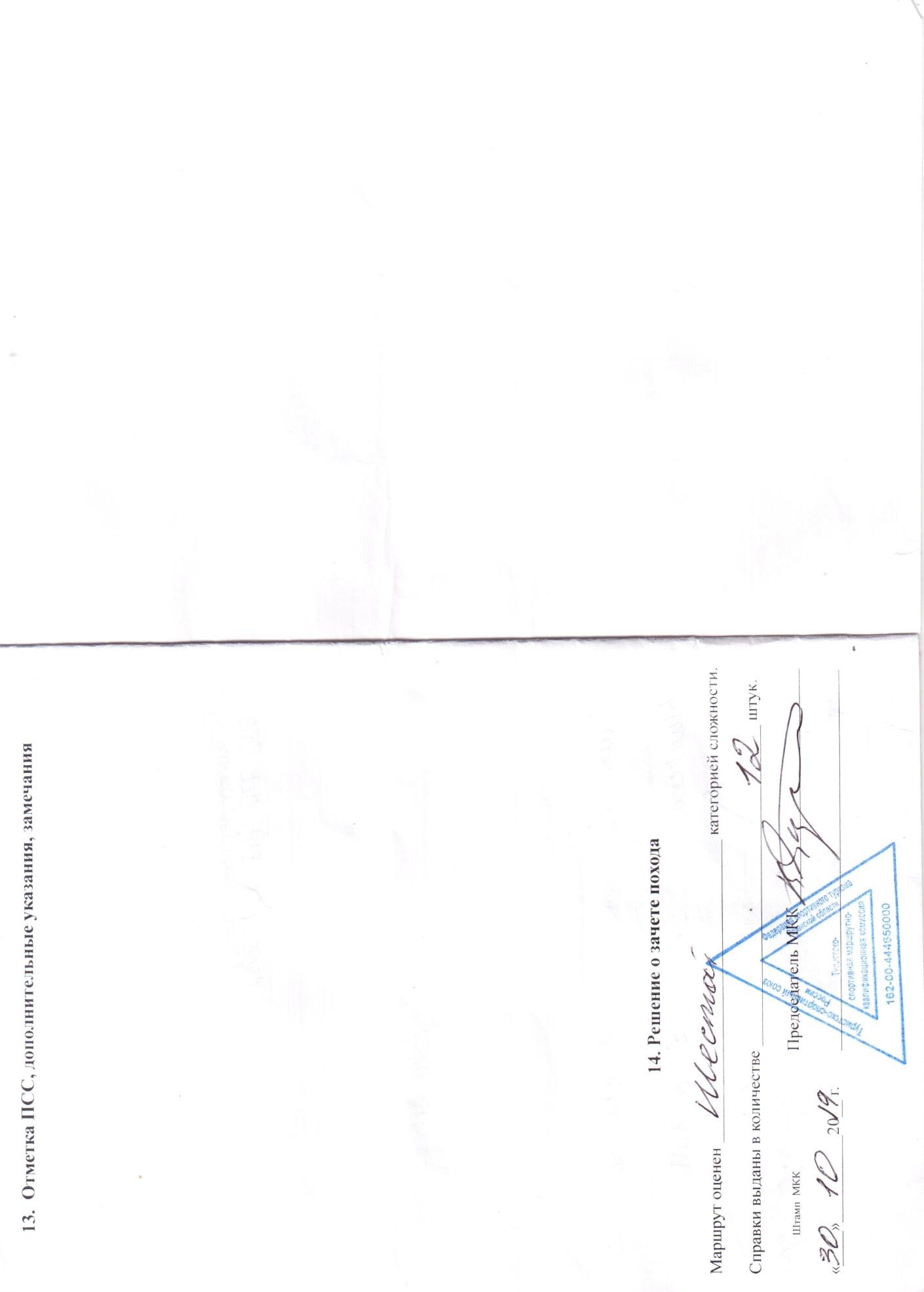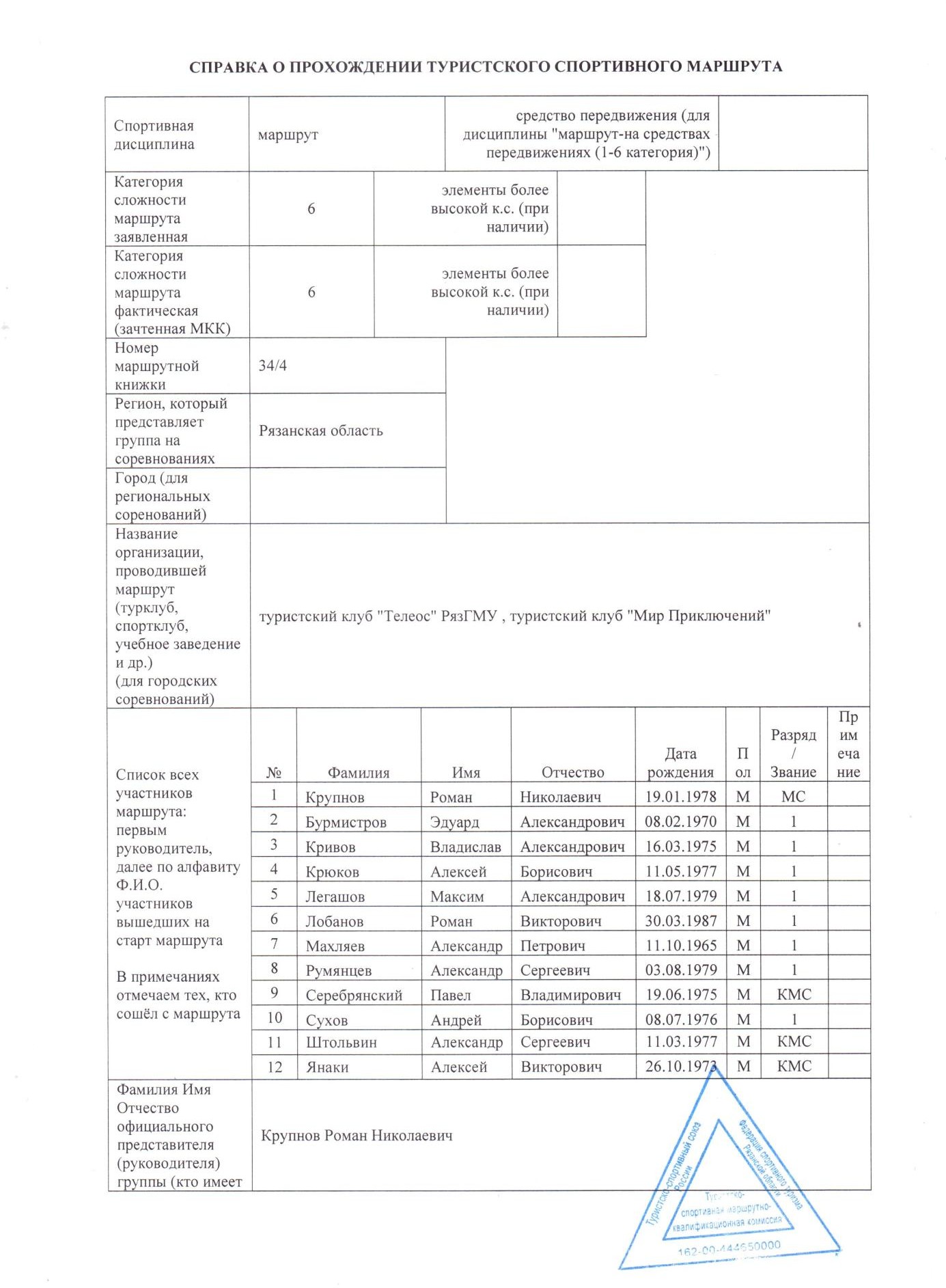 МАРШРУТНАЯ КНИЖКА № 34/ 4 выдана ТСМКК Федерации спортивного туризма Рязанской области ТССР. Шифр МКК 162-00-444650000