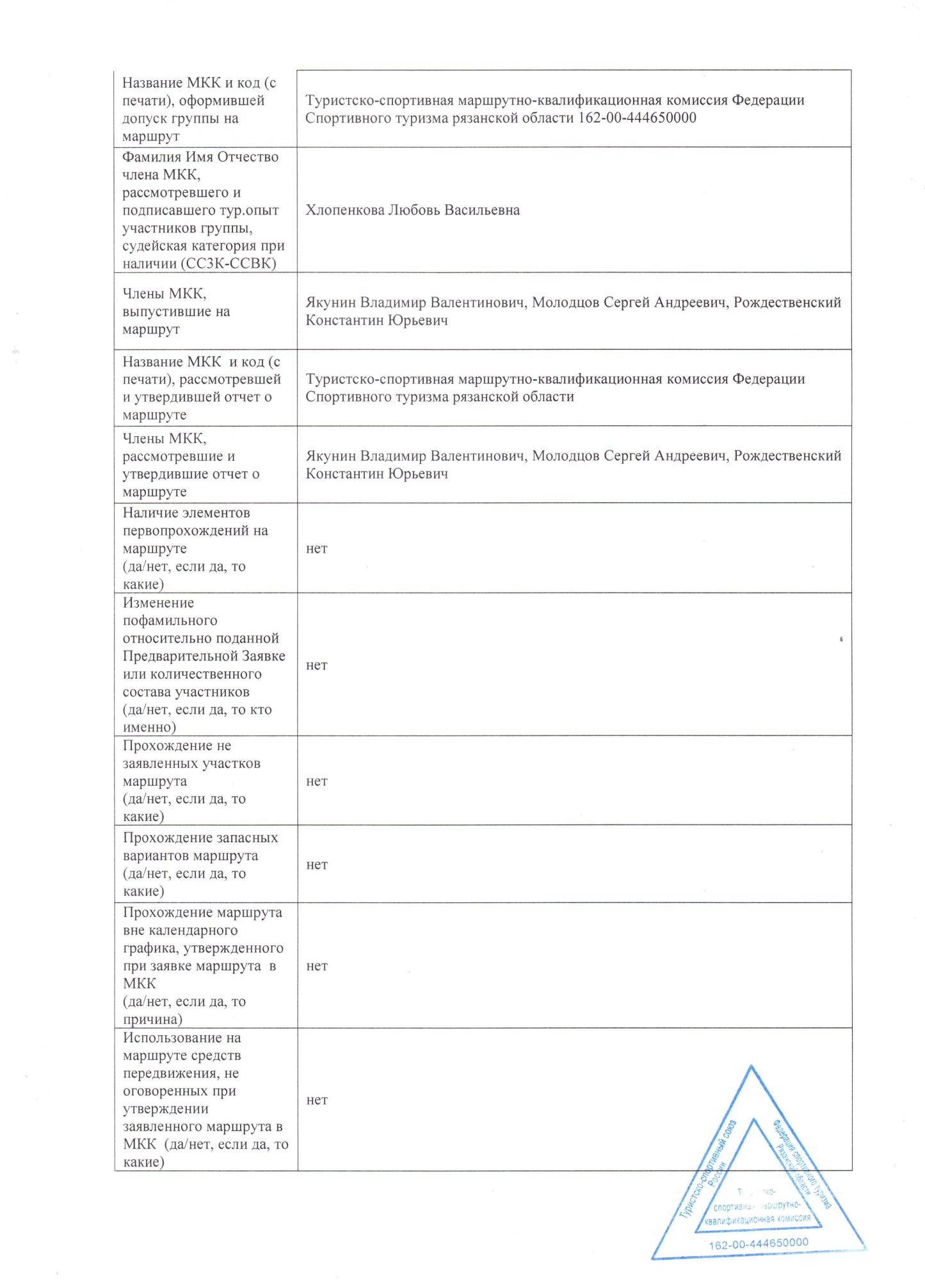 Отчет сдан в библиотеку Рязанского туристского клуба, размещен на сайте http://taganok.ru