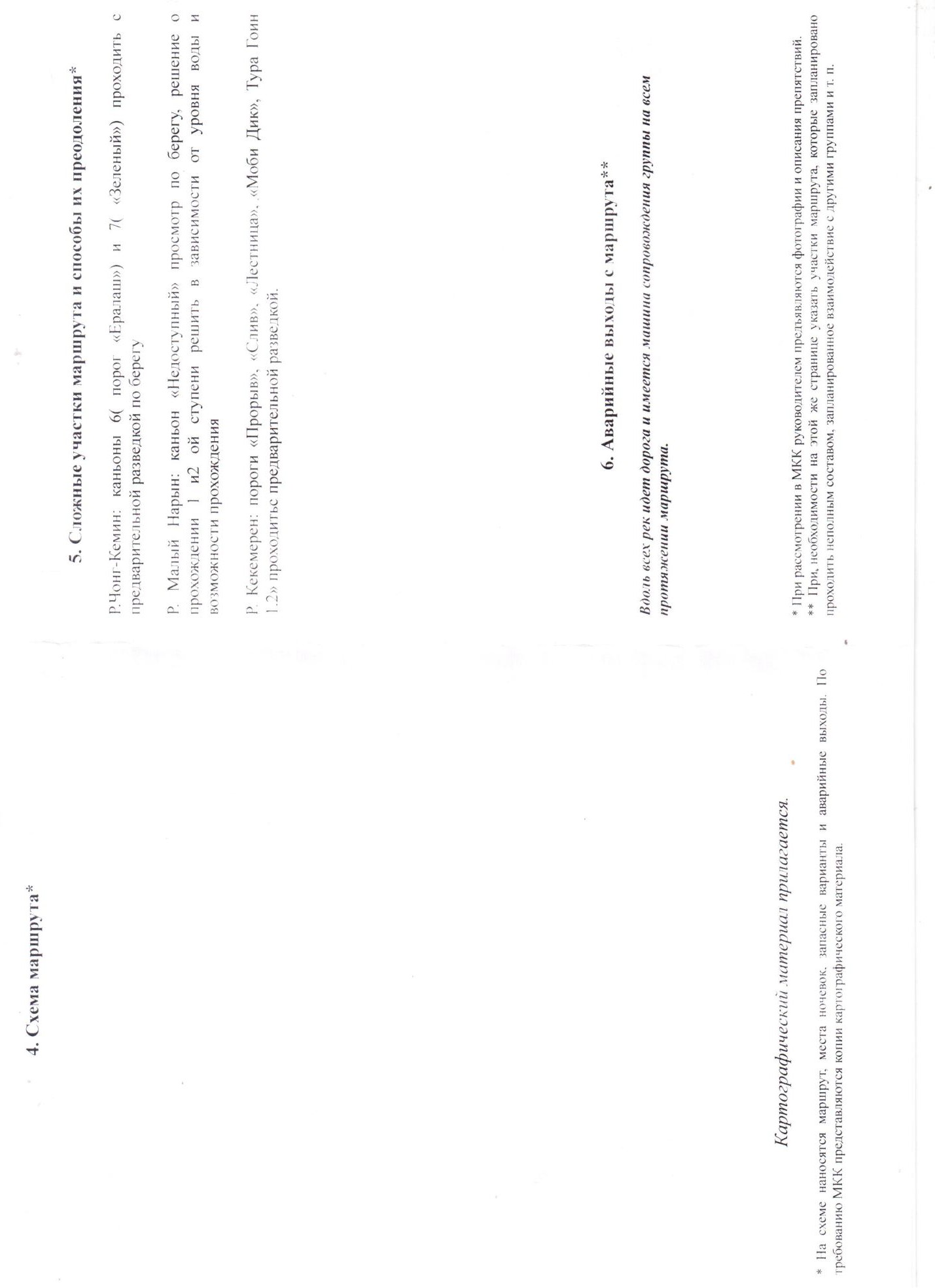 3. Для сквозного прохождения рек в «плотном графике» экипажи должны быть готовы к прохождению препятствий 5В и 5С в режиме походной колонны с ходу. Пороги 6А, 6В и 6С требуют предварительной разведки. Все пороги пройдены без килей. Страховку, где возможно, имеет смысл ставить на порогах 6А,6В,6С.