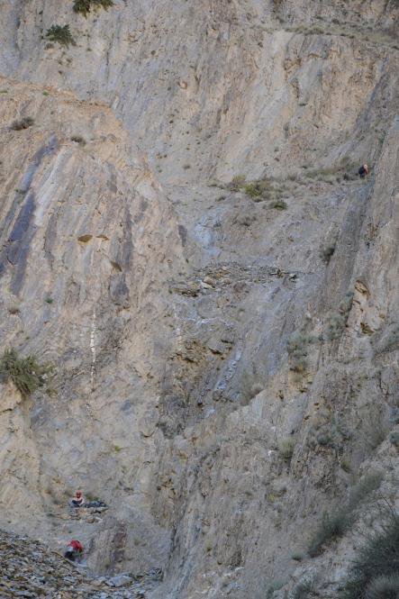 Рюкзаки спускали на веревках с оттяжкой. Поднимались тоже держась за перилку. И потом за 3 – 6 переходов поднялись на первый хребтик.