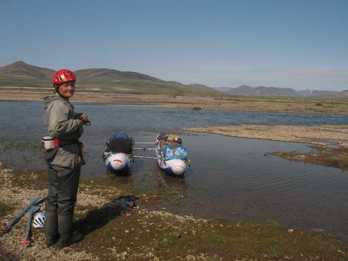 Считаем от обратного. Отсюда вниз по реке километров 150, при хорошем раскладе это три дня. Да три дня запаса на плохую погоду и встречный ветер. Правда, у нас заложены еще три дня на поиски катера из Усть- Белой. Билет-то у нас на 11 августа, на утро. 10-го надо быть уже в Анадыре.