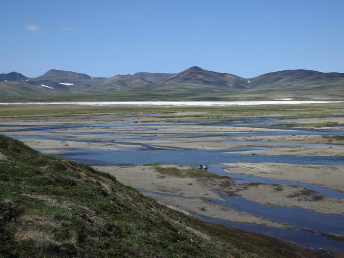 Стоим недалеко от впадения долины Юрумкувеема, на траверсе знаменитого озера Эльгыгытгын. До него около 70 км на запад.