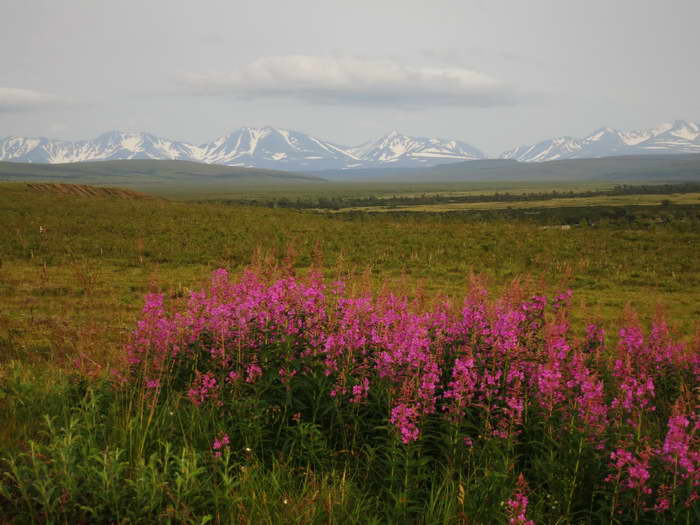 И виден хребет Пекульней! До него еще около 50 км.