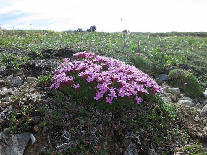 Но тундра кончается, под ногами появляются песчаные намывы, поросшие карликовым иван-чаем. Вот они то и розовели впереди. Эх, обманули! Не проинтуичила я, что вставать надо на первом же ковре, что понравился, а возвращаться уже не хочется. Будем стоять на песке.