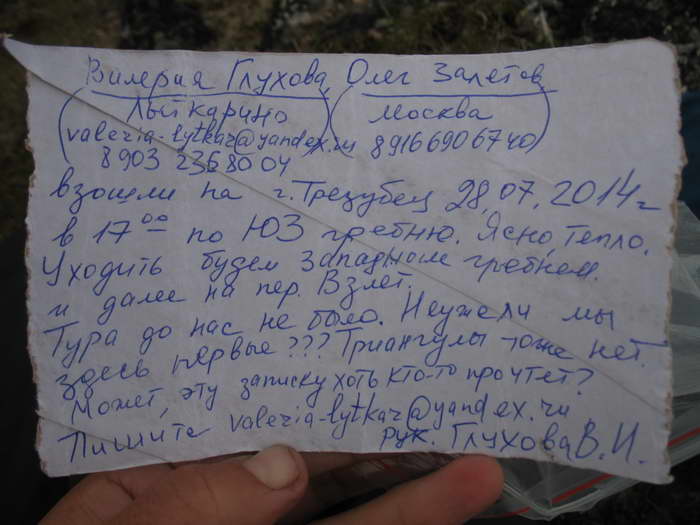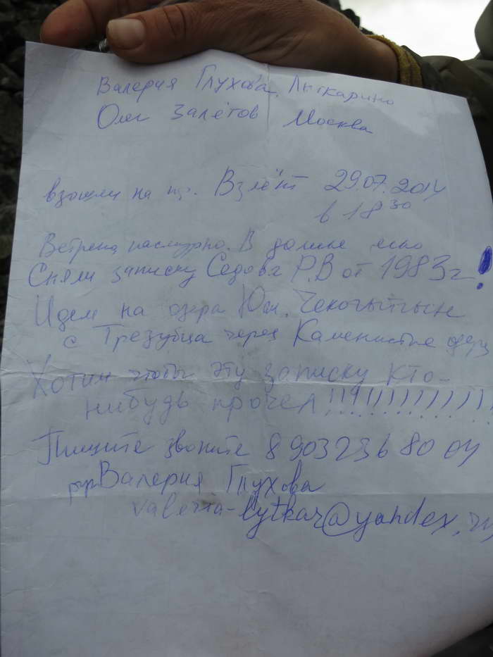 Выбираясь на перевальную площадку, произношу мольбу — «Господи, хоть бы в туре была записка!»