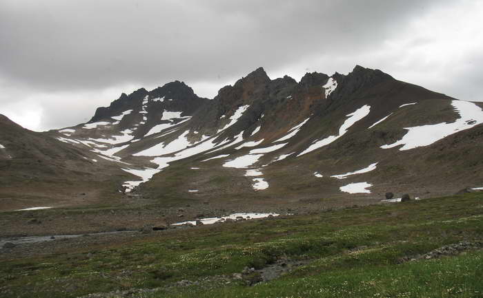 Ручей, по которому мы поднимаемся, как ни странно, берёт начало не из-под перевала, а приходит со стороны, с крутого склона безымянной вершины.
