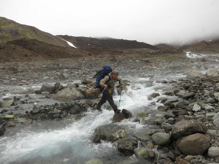 Вон два снежника — наша приметка. Но насколько они уменьшились! Их стало трудно узнать! Вот разбои на ручье, вот знакомый изгиб склона. Конечно, есть GPS, который подскажет, сколько осталось. Но интересно проверить свою память и интуицию.