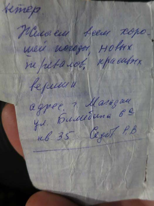 А записка здесь уже лежала.