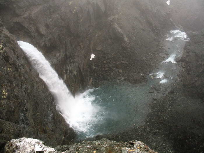 Викторыч отказался из-за пальца ноги, ну а у меня программа минимум обязательно увидеть и снять водопады, сходить разведать левый приток Озерной — по рекомендации Седова, он предполагал наличие там водопада, но сам разведать не успел. Затем каровый ледник в распадке, направленном к югу. Ну а дальше — как пойдет, по ситуации. Туман не рассеялся. Пойду в облаке. Это тоже может внести коррективы.