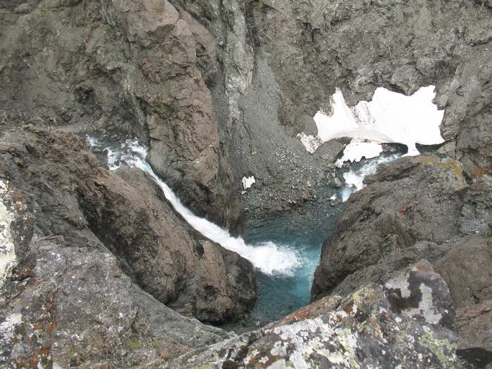 Удивляет, как спокойно Викторыч меня отпустил. Вспомнилось, как психовал он, когда у озера Пекульней я ушла фотографировать на 15 минут, а пропала на часок. Мне тогда попало. А сейчас ухожу на полсуток в неведомый каньон, разведывать неизвестный приток, ледник, ещё и неназванная вершина в голове крутится — залезу чёрти куда, а он внешне почти совсем спокоен. Неужто так теперь доверяет?