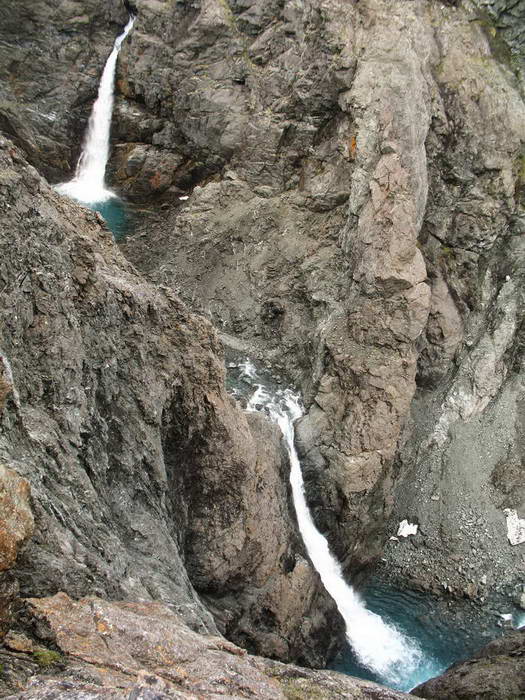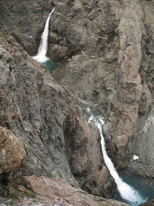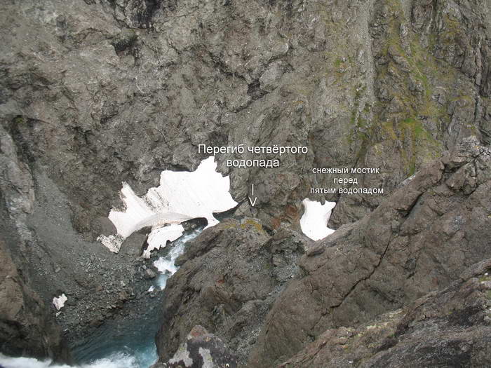 Для полноты съёмки добегаю и до последнего, что падает в озеро. Считаю его шестым. К четвертому и пятому по крутой осыпи спускаться не буду — долго. Хватит фотографий.