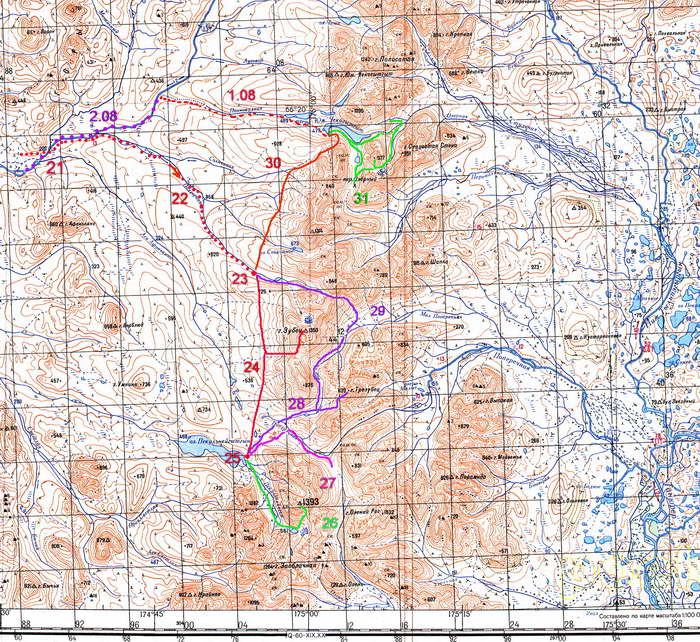Нам нужно осуществить переброску Базы на север, километров на 15, к озёрам Южные Чекогытгын. Оттуда запланировано ещё одно кольцо — к водопадам в каньоне реки Озёрной. Может быть и залезть ещё куда-нибудь удастся.