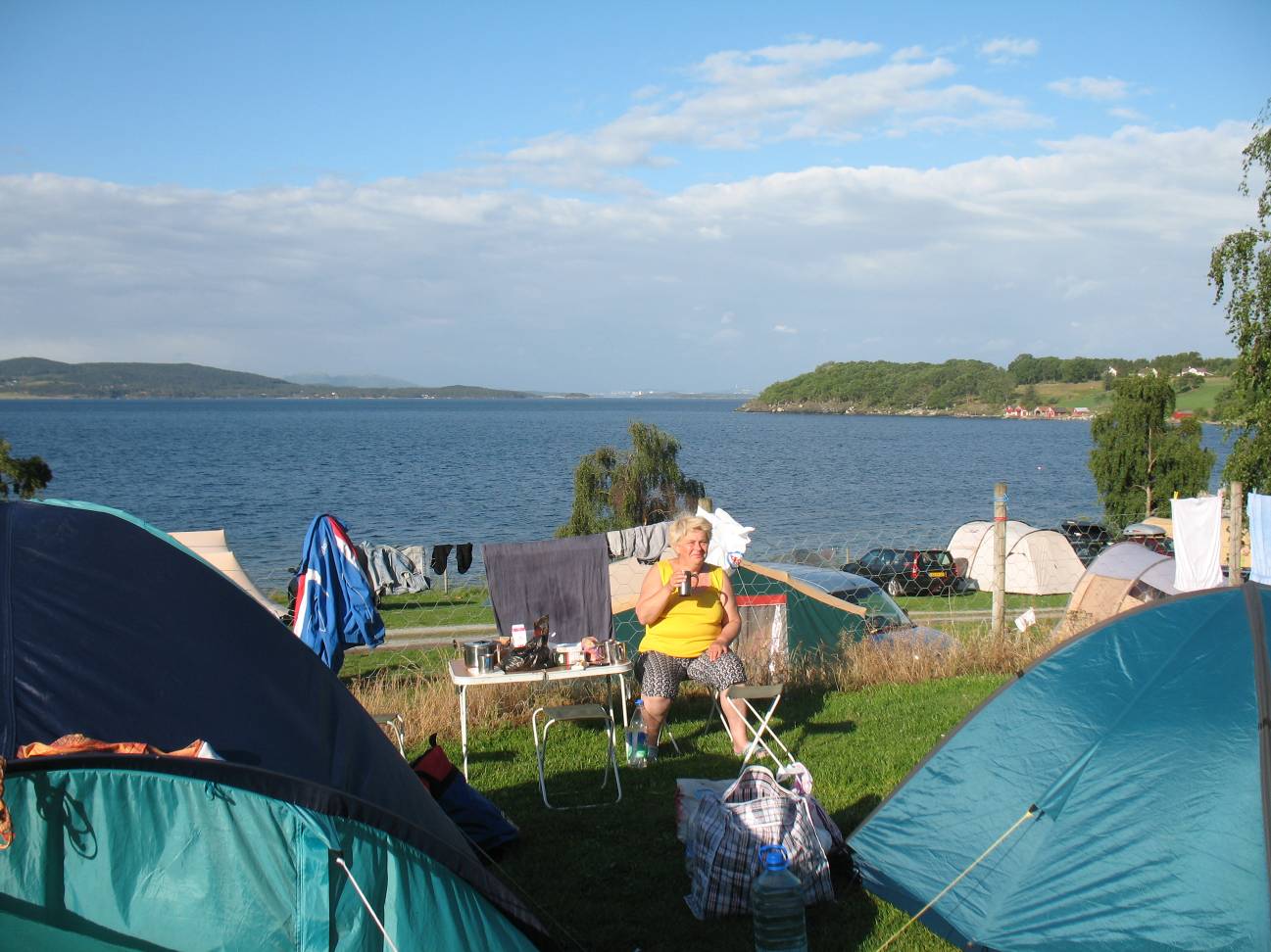 Дальше по Е16 в сторону Осло. Проехав поворот на небольшой городок Hole, и переехав по длинному мосту через пролив между озерами, съезжаем на дублер Е16 к берегу озера, почему-то под названием Tyrifjorden, объезжаем два кемпинга, возвращаемся в первый – он нам больше понравился. Время – 17-40. На ресепшине замечательное объявление — свободных домиков нет, вставайте, где вам понравиться, вечером мы к вам подойдем.