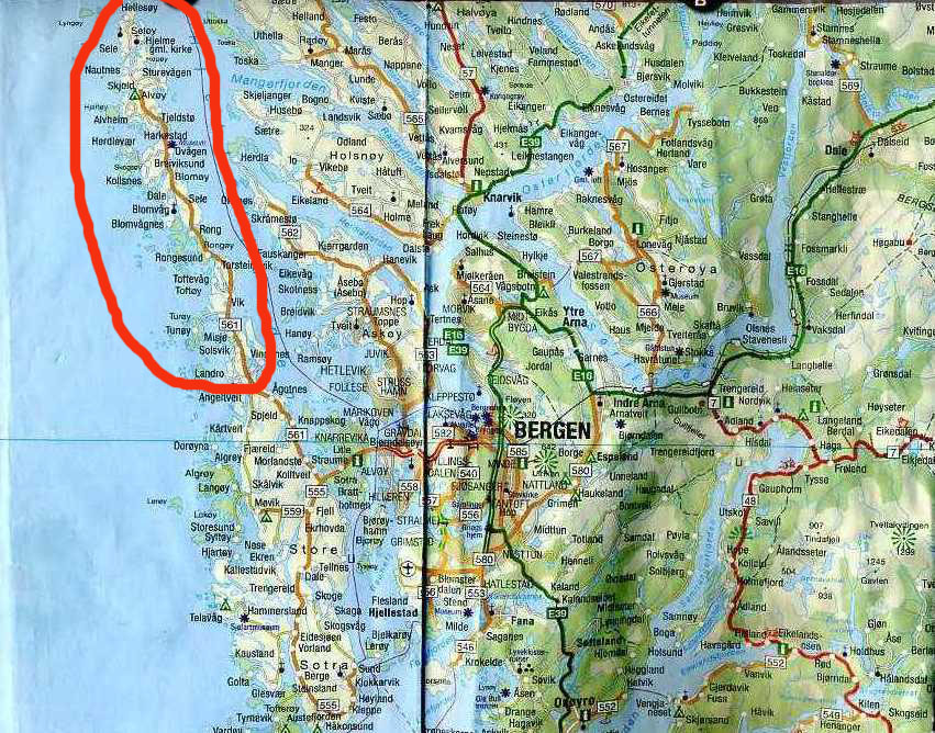 Кемпинг расположен на 580 дороге около озера Haukelandsvatnet, после городка Haukeland. Занимаем свой домик (тоже только плита, стоимость 1400 крон за две ночи). В город вечером ехать нет смысла. У Степанова рождается великолепное предложение: съездить на цепочку островов, которая выходит уже к открытому Северному морю или, как мы считаем, к Северному Ледовитому океану.