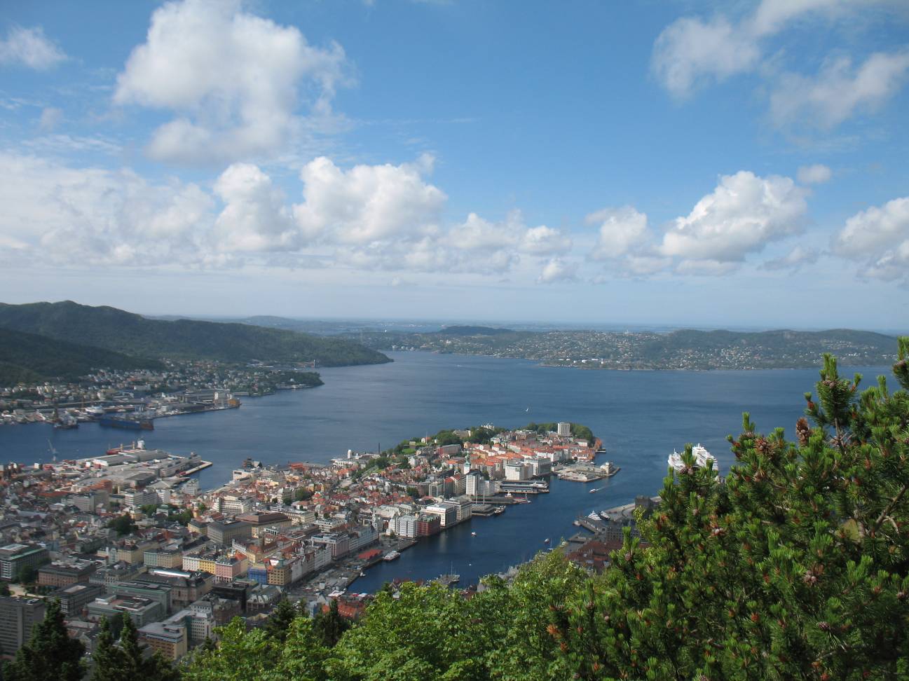 Сегодня просто гуляем по Бергену. Уехали из кемпинга в 10-30, вернулись в 20-20. Что описывать Берген – по нему надо просто погулять. С погодой нам повезло. Всюду пишут, что Берген – самый дождливый город в Норвегии. Утром, пока мы собирались, шел небольшой дождь, зато потом в самом городе была прекрасная погода. Уходились до полного изнеможения. Ездили на одной машине вчетвером. Сколько наездили – не знаю,