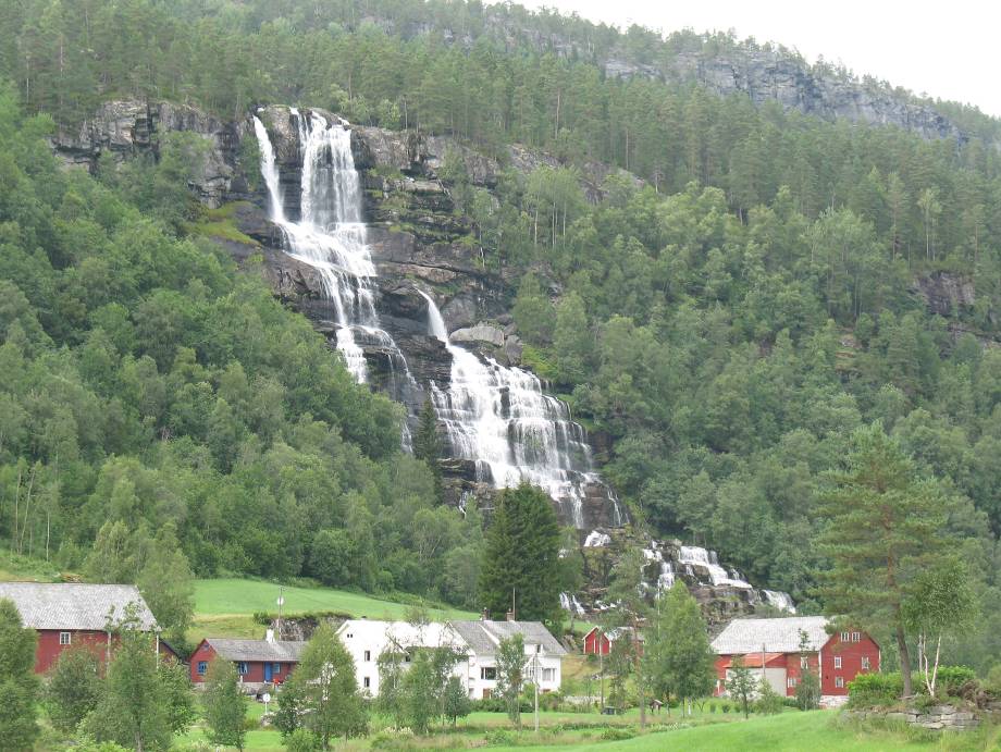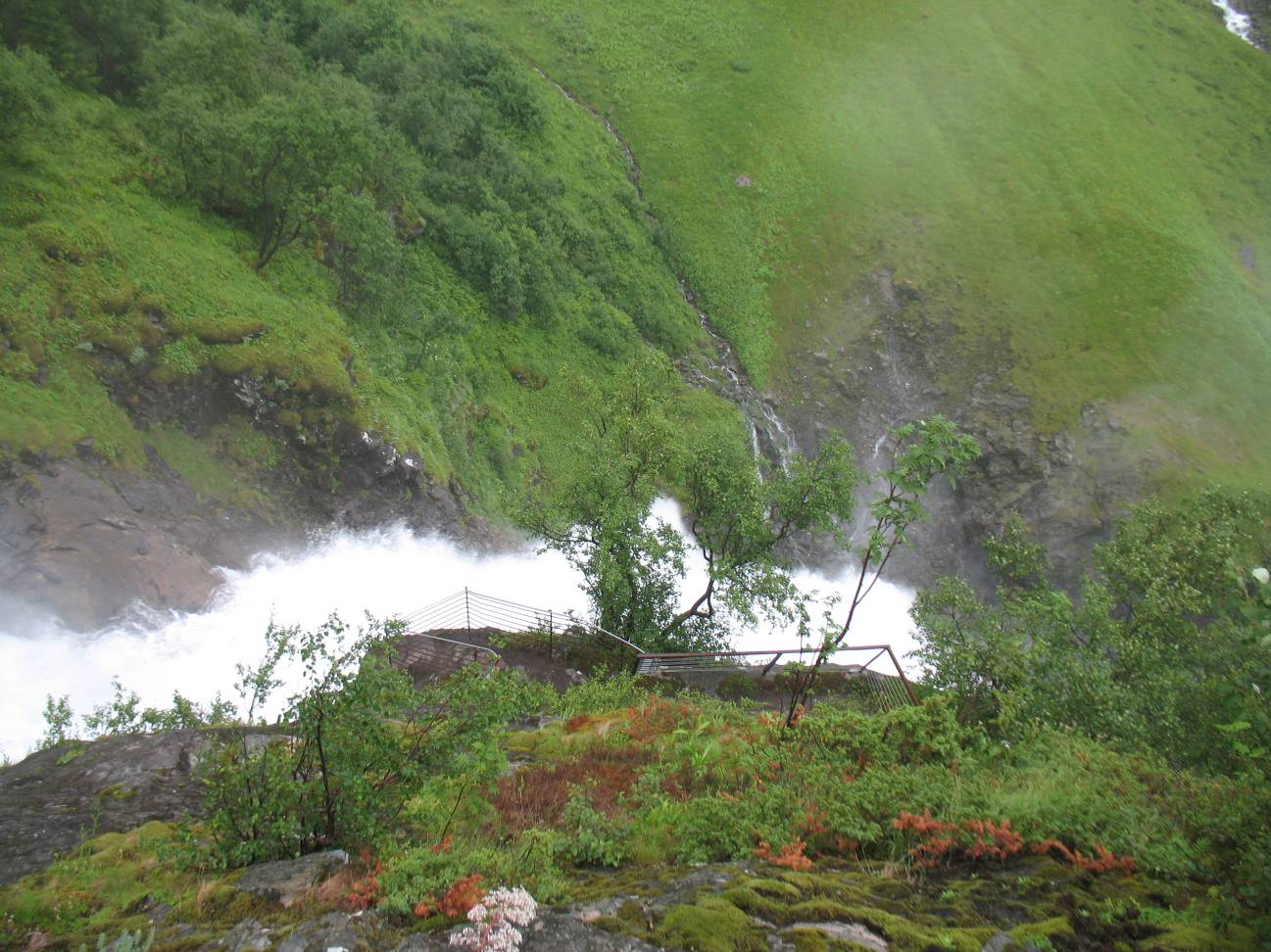 Сегодня движемся к леднику, по которому мы должны гулять завтра. Выезжаем в 11-20. Едем по 580-й дороге до ее слияния с Е16, далее по Е16. В 13 часов въезжаем в городок Voss, где наконец-то удается купить пиво (со спиртным в Норвегии очень строго, даже пиво продается только до 14 часов). Быстро фотографируем водопад.