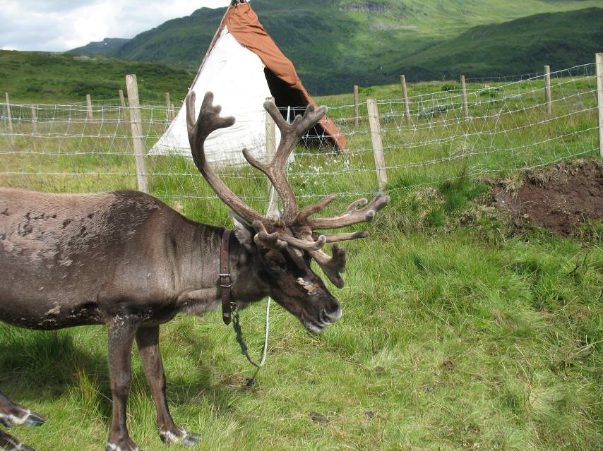 По окончании серпантина на плато обнаруживается магазин сувениров, со стоящим рядом чумом и живым оленем.