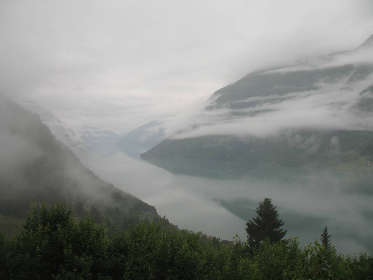 Дальше дорога вливается в Е39, с которой мы сворачивает на дорогу №60, по которой серпантином скатываемся к другому фьорду Innvikstfjorden, одному из рукавов фьорда Nordfjord, где в городке Olden останавливаемся в заказанном домике в кемпинге Alda-camping. Стоимость ночевки -330 крон (удобства во дворе). Идет дождь. Под ногами – почти болото.