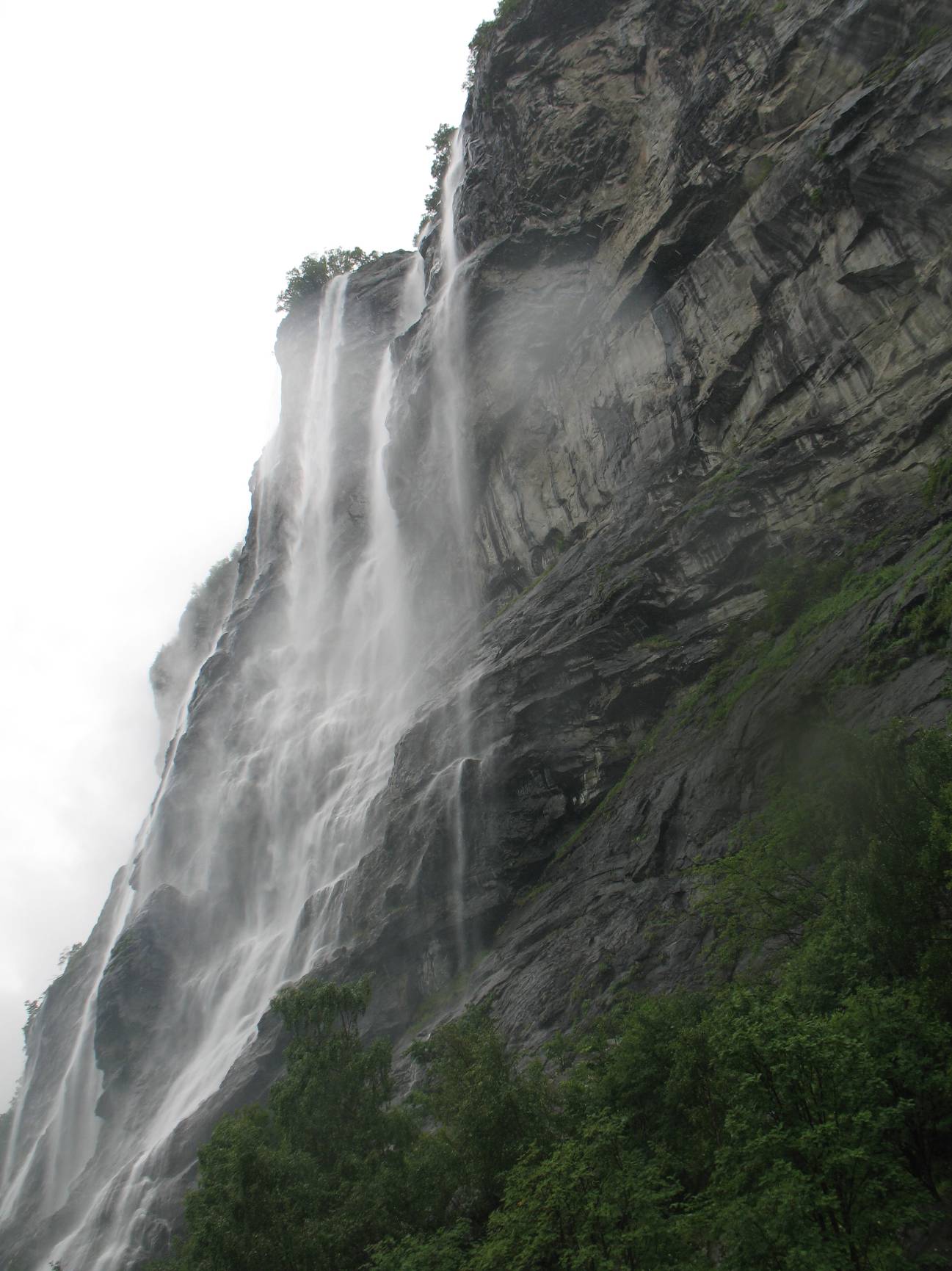 В 10 утра выезжаем в сторону Гейрангер-фьорда, где у нас заказано самостоятельное путешествие на моторке по фьорду. С утра идет дождь. Едем дальше по 15 дороге. На подъеме в 11 часов останавливаемся около очень красивого водопада – фотографируем.