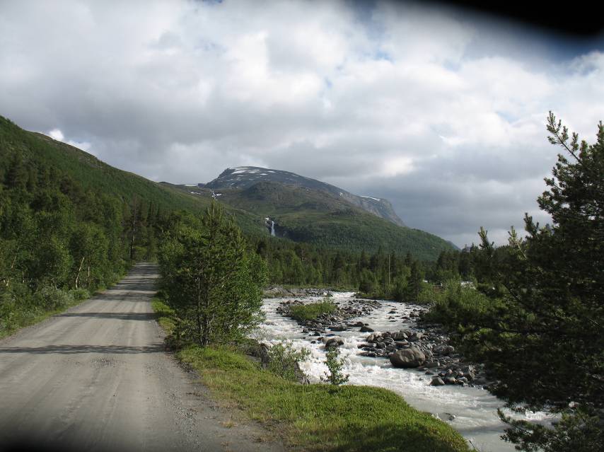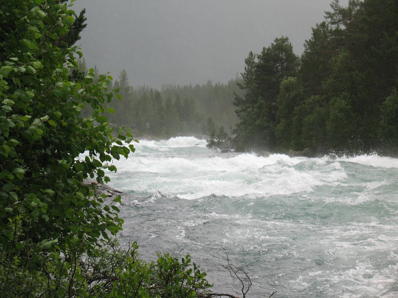 День начался с того, что Люся искупалась во фьорде,и сразу же пошел дождь. Завтракаем и в 9 -20 отправляемся из кемпинга. Выезжаем на Е18. Дождь расходится во всю.Дорога очень красивая, но льет так, что остановиться и что-нибудь поснимать невозможно. Наконец дождь утихает.