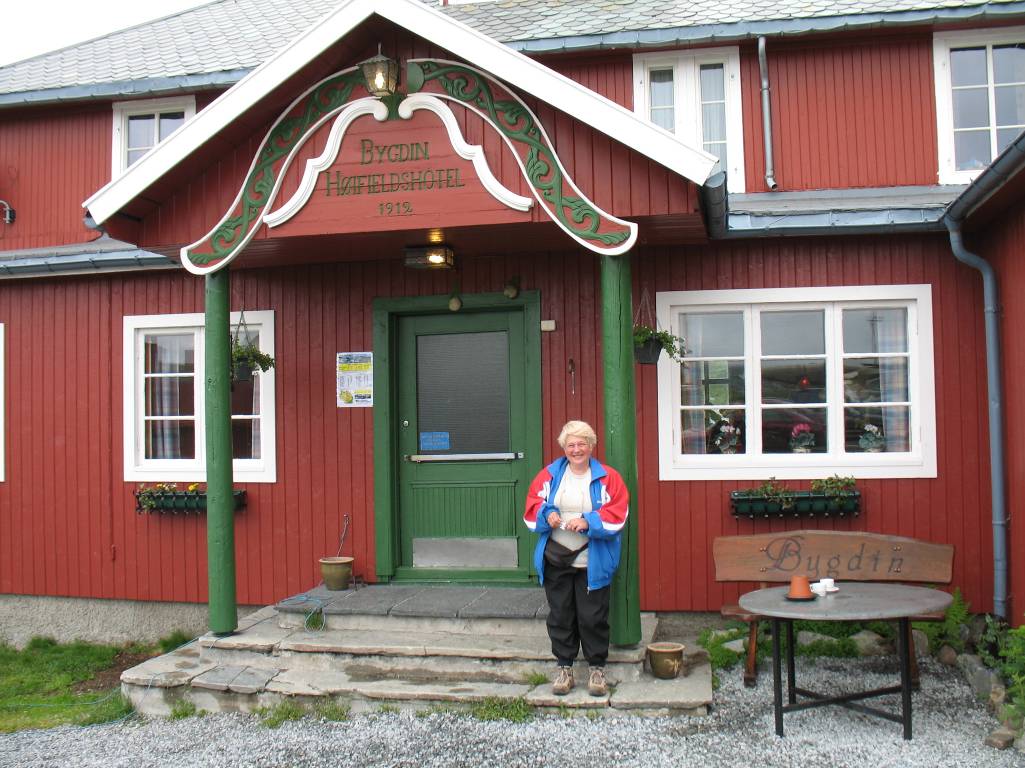 Встали в 7-30, собрали лагерь, перепаковали вещи под машинный вариант движения, позавтракали и двинулись в путь. Остановка через пару километров после гостиницы Бигдин – стоит чум – сувенирный магазинчик. Покупаем сувениры, через 1-2 км останавливаемся на смотровой площадке, чтобы еще раз попрощаться с этими изумительными горами. И вниз, вниз – в сторону Осло.