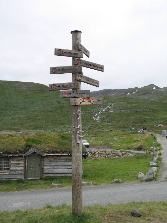 Прощаемся с капитаном, идет в туристический центр, там перекусываем и покупаем карты на эту часть гор. На базе стоят указатели маршрутов DNT.