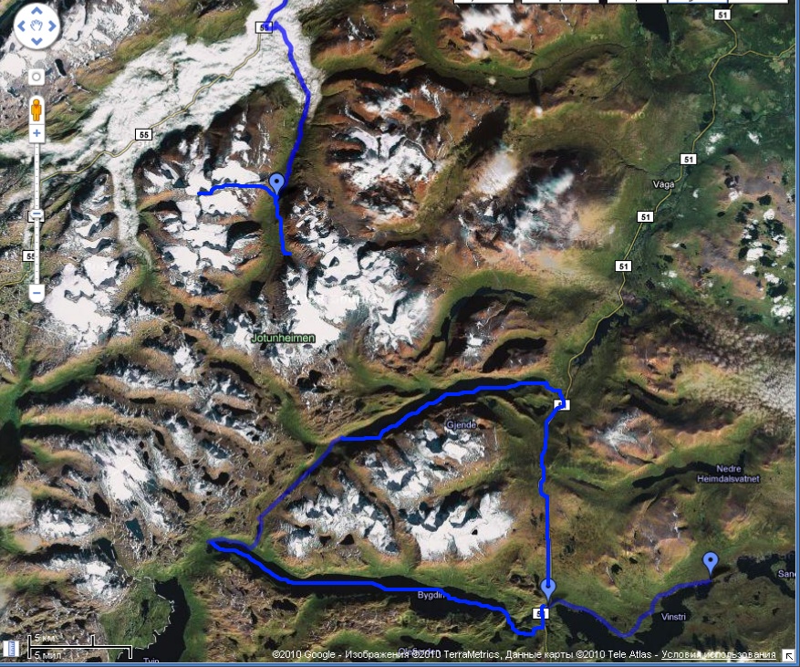 Итог нашей поездки и пеших вылазок по Йотунхеймену на карте: