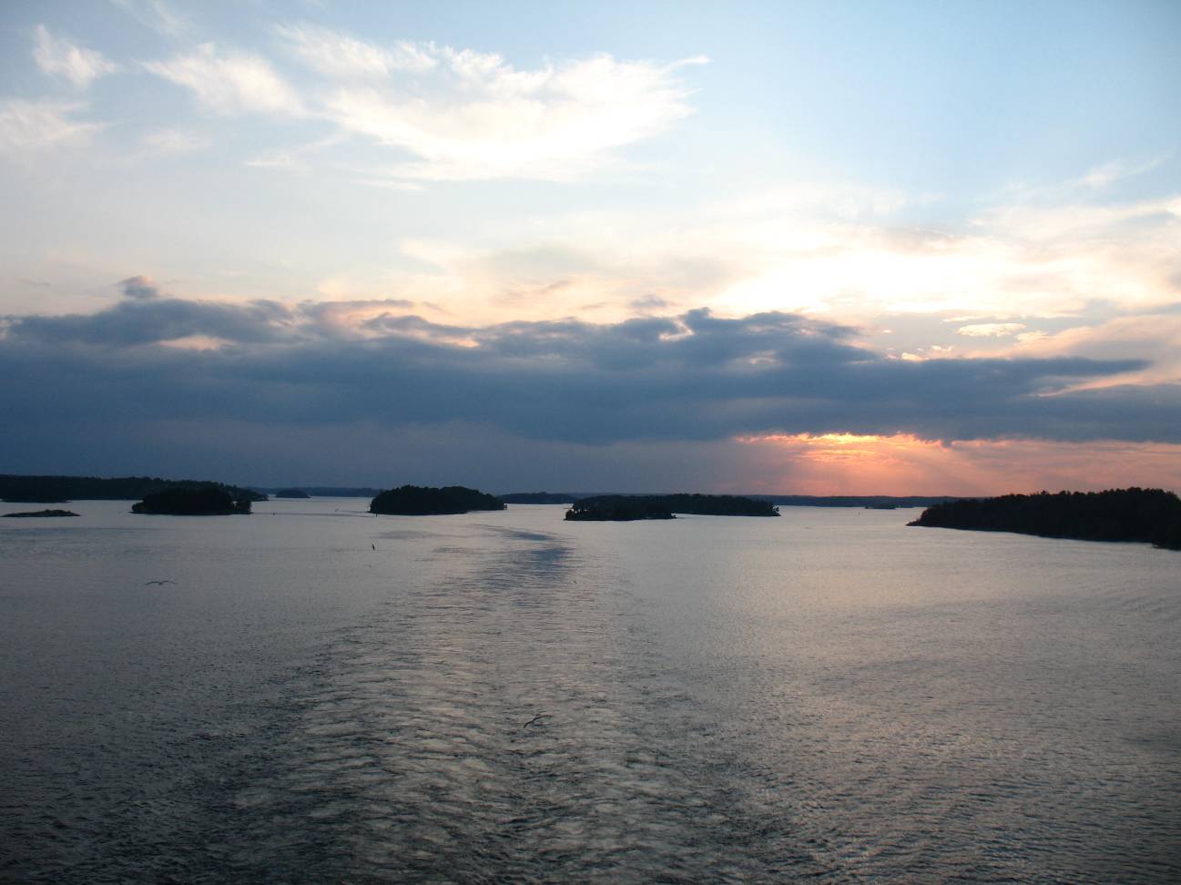 В 20-15 финского времени паром отходит. Для экономии денег на этот паром мы взяли самую дешевую каюту на 4-х человек (С-класса). Никогда больше на своих удобствах экономить не будем! Ехать в трюме было очень неприятно и к тому же очень душно. Это при том, что разница по деньгам на четверых была мизерная. А само плавание среди живописных островков было очаровательным. Открытого моря мы не видели.