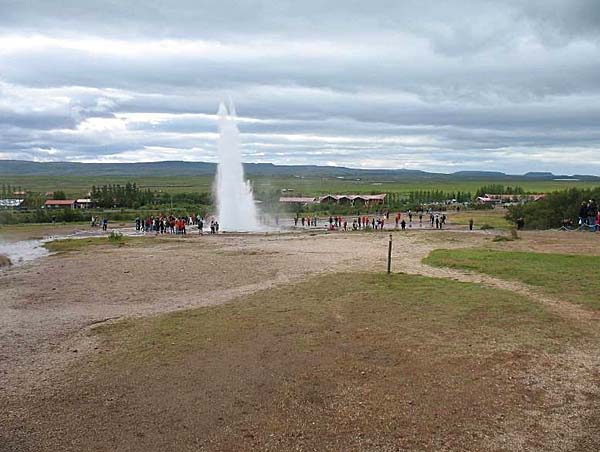 Вперед к Гейзеру по дороге № 37, далее по № 35. С 11 до 13 часов гуляем в районе Гейзера. Большой Гейзер молчит, зато Строккур радует глаз. Окрестности тоже очень интересные. Я уже говорила, что не буду поддаваться эмоциям в описании. Если коротко: как мы открыли рты от изумления в первый день, так больше их и не закрывали до самого отъезда из Исландии. Восхищенное: «О-Ох!» было практически на каждом шагу.