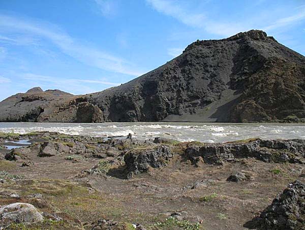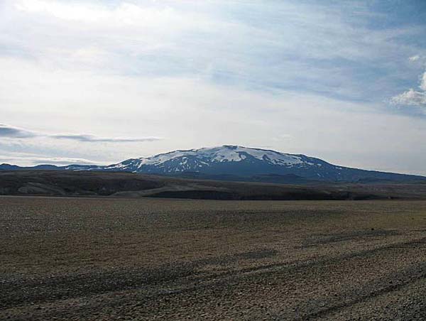 Закупаем продукты и газовые баллоны (газовые баллоны продаются на многих заправках) на заправке в Хвосволюре, и в 10 часов поворачиваем на дорогу № 26 на Геклу- один из самых знаменитых вулканов Исландии. Гекла до настоящего времени достаточно активный вулкан – извергается приблизительно каждые 10 лет. В древности Гекла считалась воротами в ад. В 11 часов мы около Геклы, смотрим около дороги на схему и утверждаемся в своем решении ехать дальше по дороге № 26, т.к. на более короткой дороге № 225, проходящей ближе к Гекле, нарисовано два брода. Так как день у нас и так предстоял напряженный, решили ехать более длинным и надежным путем, о чем, кстати, потом не пожалели, потому что дорога оказалась очень интересной.
