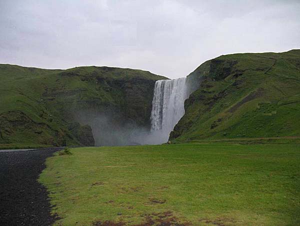 В 20-25 едем дальше. В 20 50 подъезжаем к водопаду Скогафосс ( Skogafoss) . Съезжаем к водопаду ( поворот на Skogar). Начинается сильный дождь. Быстро смотрим водопад (без дождя мы, конечно, погуляли бы там дольше), 21-10 выезжаем по направлению к гостинице под сильным дождем и ветром.
