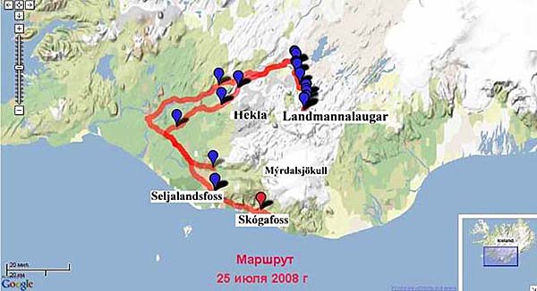 Выехали из гостиницы в 9-30. Сегодня в планах – Гекла (Hekla), но без близкого подъезда к ней, и Ландманналаугар. (Landmannalaugar).