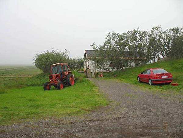 Итак, в 12-40 мы на ферме № 175 Rauðsdalur. Время для нашего заезда еще не наступило. Заезды во все фермы начинаются с 15-00. Но (о счастье!) оказалось, что хозяин фермы подрабатывает ремонтом колес. Срочно вытаскиваем прорезанную запаску и через 20 минут мы снова готовы трогаться в путь. Правда разрез оказался довольно большим, но мы рассчитываем, что больше приключений такого рода не будет, и оно пролежит до конца поездки в качестве запаски. Если бы знать свое будущее…..