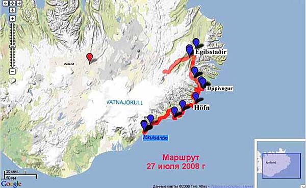 В 11-30 выезжаем из Лагуны. Путь на восток — сегодня к вечеру мы должны добраться до окрестностей восточной столицы Исландии, городка Эгилстадир.((Egilsstaðir).